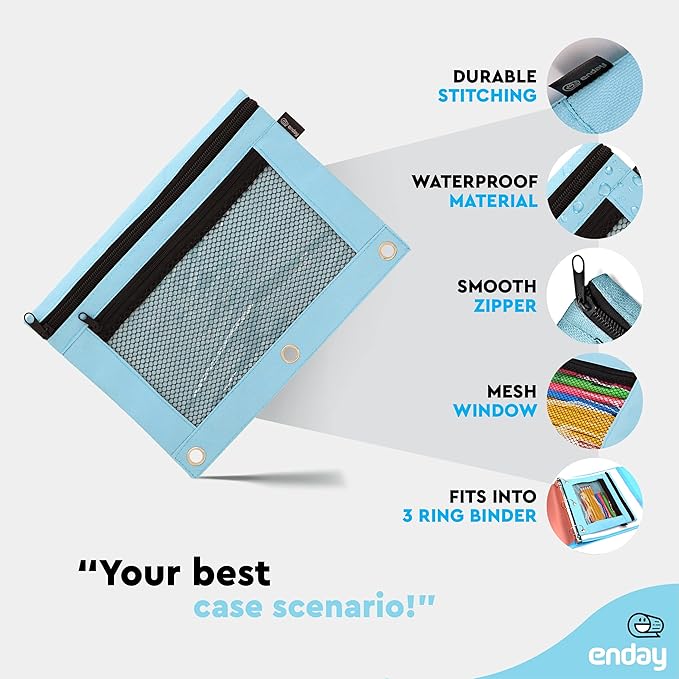 Enday Blue Pencil Pouch For 3 Ring Binder, Zippered Binder Pencil Pouches, 3 Ring Pencil Pouch for Binder, Pencil Case for Binder, Large Pencil Bags for School, Home, and Office