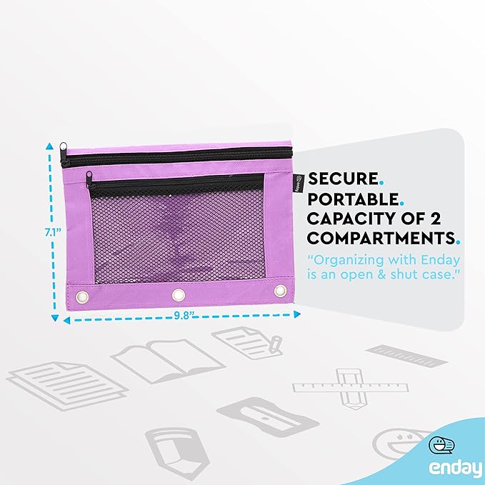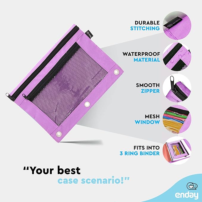 Enday Purple Pencil Pouch For 3 Ring Binder, Zippered Binder Pencil Pouches, 3 Ring Pencil Pouch for Binder, Pencil Case for Binder, Large Pencil Bags for School, Home, and Office