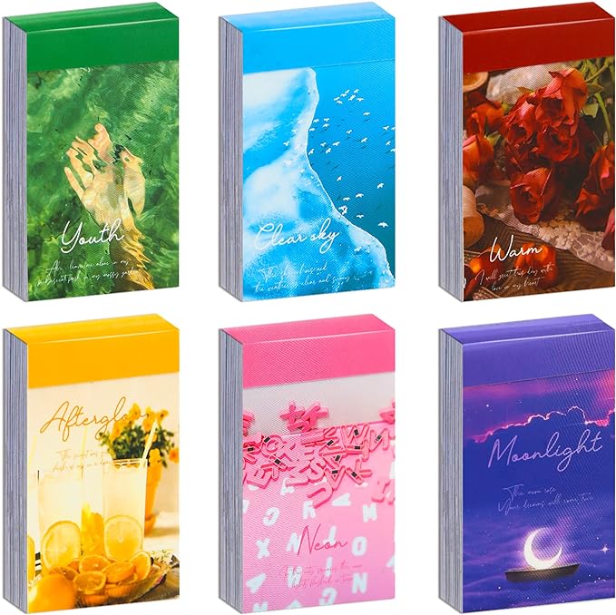 6 Sets 300 Pcs Washi Stickers Set Cute Aesthetic Sticker Book for Journaling, DIY Decorative Paper Sticker Decals for Bullet Journal Art Scrapbooking Diary Card Craft Gift Album Notebook Stationery