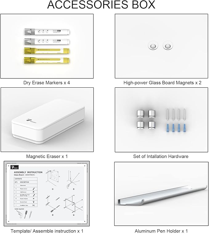 TOWON 47 x 35 Inch Glass Dry Erase Board Reminder, Magnetic Whiteboard Calendar Yearly, Monthly Planner Set for Office, Kitchen and School, Black
