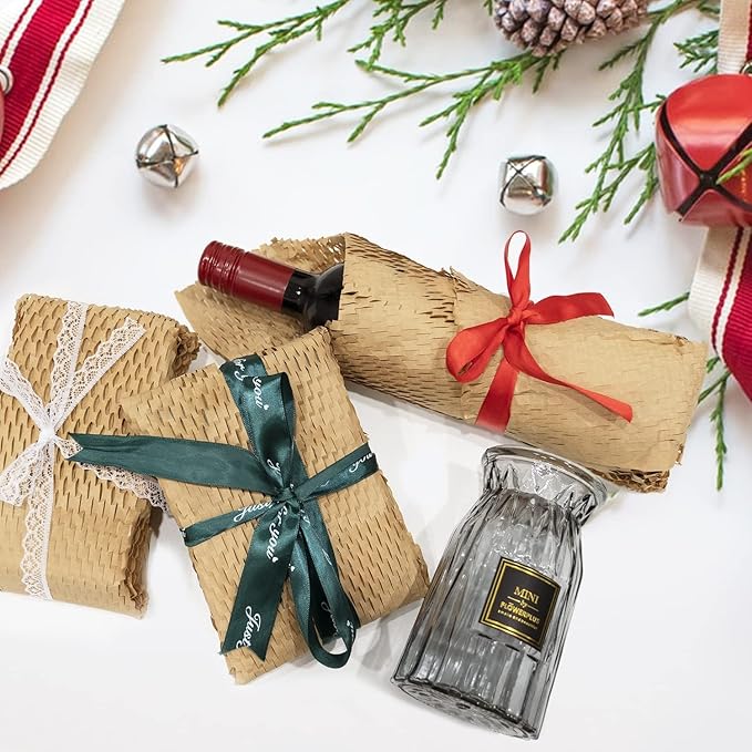 - 【Space Saving & Easy to Use】: Flat compact honeycomb wrapping paper roll saves your storage space, compared to bulky plastic bubble cushion wrap roll and peanuts. You can tear up with hands, no needs of tape or scissors.