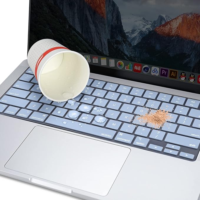 MOSISO Keyboard Cover Skin Compatible with MacBook Air 15 inch M3 A3114 M2 A2941/Air 13.6 A3113 A2681/Pro 14/16 M4 M3 M2 M1, Pastel Blue