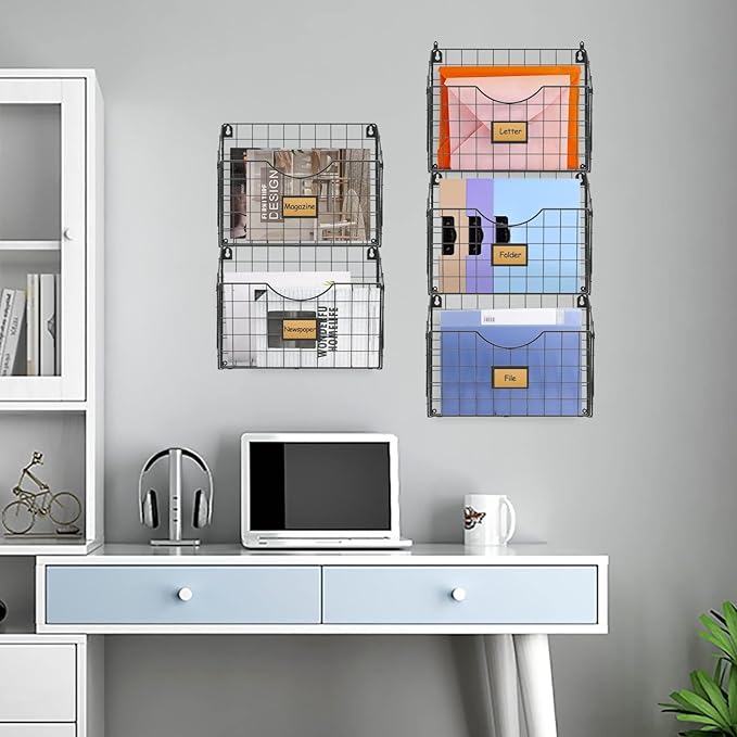 - Saving more space: Keep your space organized.Take full advantage of your vertical space and keep your desktop clear,also the wall files come with 5pcs blank tag paper