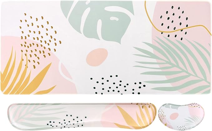 iCasso Desk Pad Mat, Big Ergonomic Mouse Pad,+ Keyboard Pad+Wrist Rest, Easy Typing Pain Relief, 3Pcs (35.4×15.7 in) Keyboard Mat Desk Mat for Keyboard and Mouse (Morlandi)