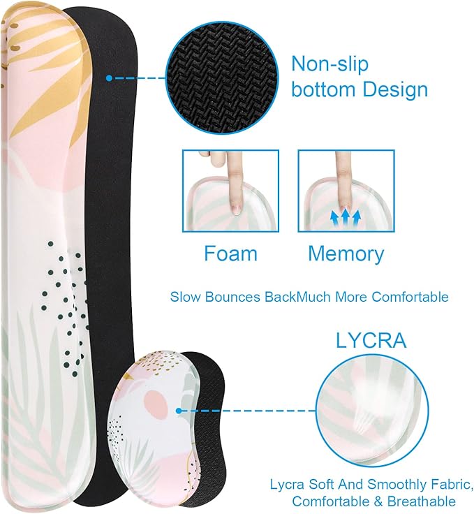 - Wrist Rest for Computer Keyboard and Mouse: With Comfortable Memory Foam & Breathable Material to the pads. The fabric of the surface is super soft. Slow bounces back and are not easy to out of shape provides comfortable and elastic support to the wrist
