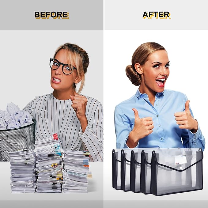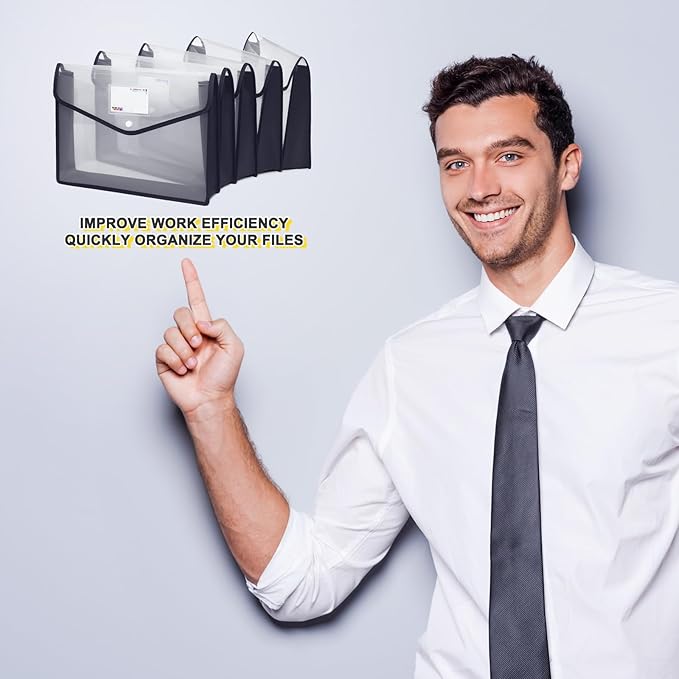 - Excellent Performance: The file Organiser can be used for portfolios or conferences and is great for storing important documents on the desk, With its sleek and smart design, you will look professional, taking this to any business meeting or using it for work! This Plastic File Wallet is also the perfect choice for children to develop the habit of organizing files. Plastic Folders with great snap closure and identification labels, is safer and convenient keeper