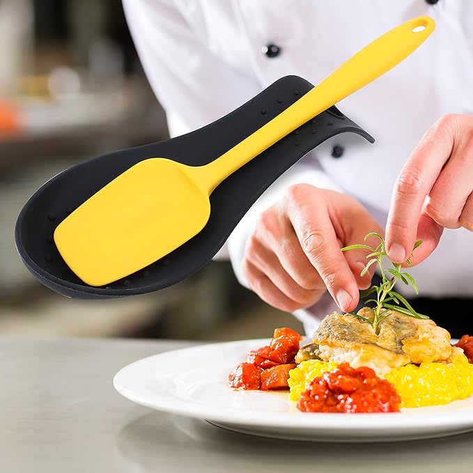 MSY BIGSUNNY Silicone Spoon Rest for Stove Top, Heat Resistant Spoon Rest, Cooking Utensils Holder for Kitchen Counter - (Set of 2, Black)