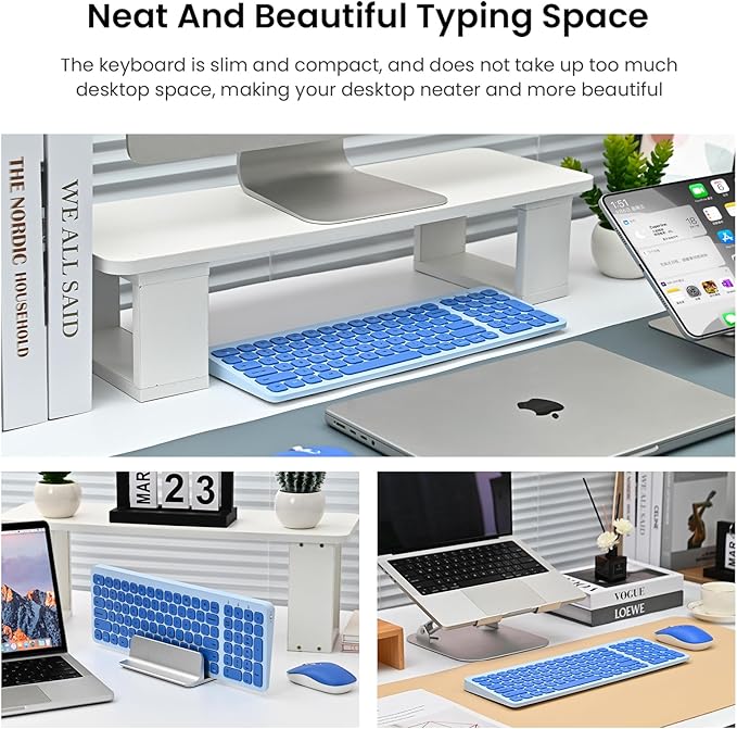 cimetech Wireless Keyboard Mouse Combo, Compact Full Size Wireless Keyboard and Mouse Set Less Noise Keys 2.4G Ultra-Thin Sleek Design for Windows, Computer, PC, Notebook, Laptop - Blue