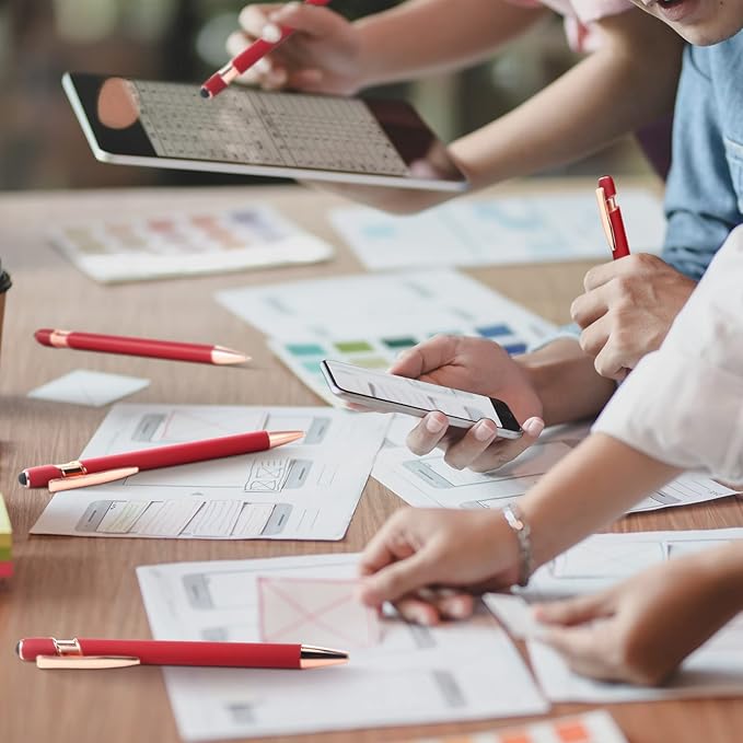 Tenare 12 Pieces 2 in 1 Stylus Metal Ballpoint Pen with Stylus Tip, 1.0 mm Black Ink Ballpoint Pen for Touch Screens(Wine Red and Rose Gold)