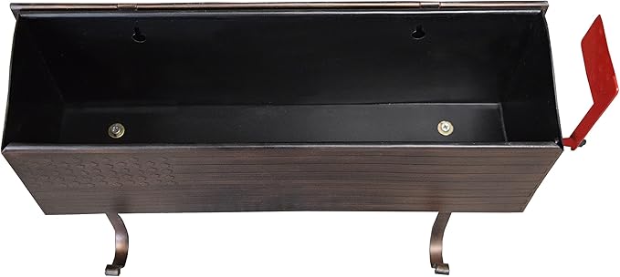 - Copper Patriotic Metal Wall Mounted Mailbox with Outgoing Mail Flag and Newspaper Hangers exterior dimensions are: 16.5in L x 4.5in W x 6in H, 4 Lbs.