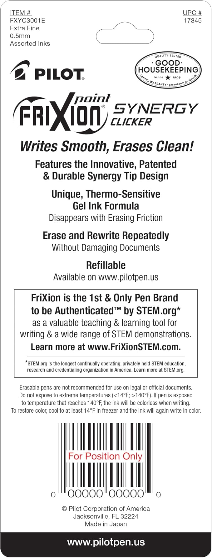 - Stress-Free Writing: Write, erase & rewrite repeatedly without damaging your documents; Unique thermo-sensitive ink disappears completely with erasing friction