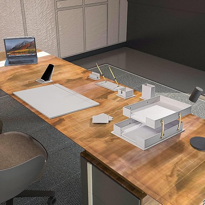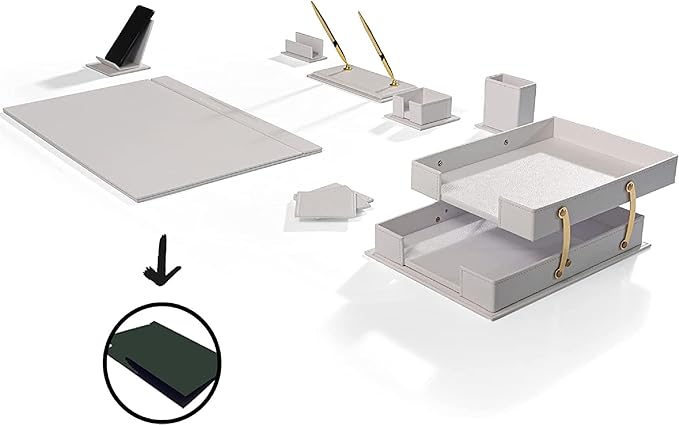- The bottom of each of our desk accessories and workplace organizers is lined with a protective velveteen backing to ensure the surface of your desk stays scratch and scuff free.
