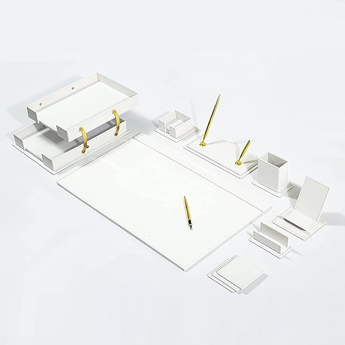 MOOGCO Bonded Set - Desk Accessories - Leather Desk Organizer - Bonded Leather Set - Office Desk Accessories - Home Office Accessories - Desk Supplies - Leather Desk Set - Office Accessories