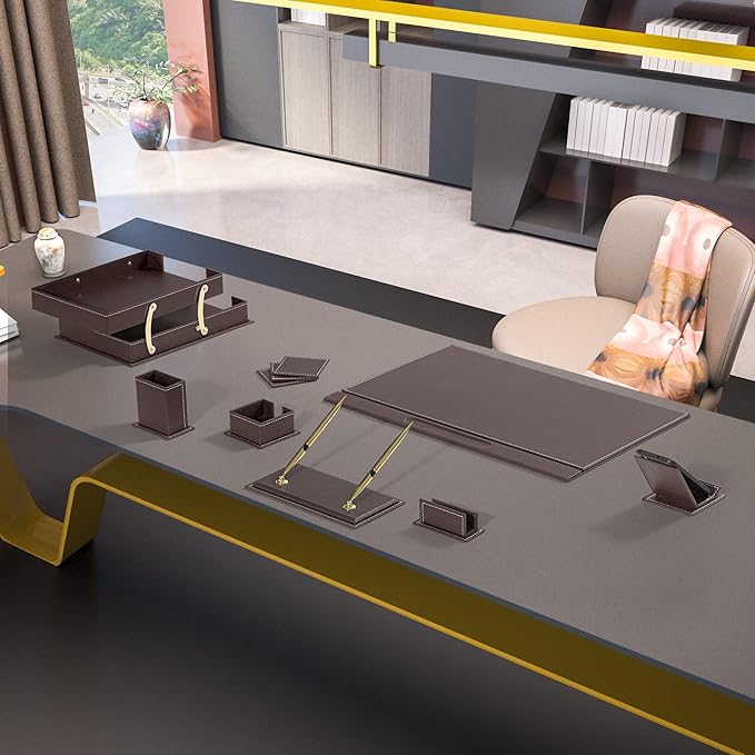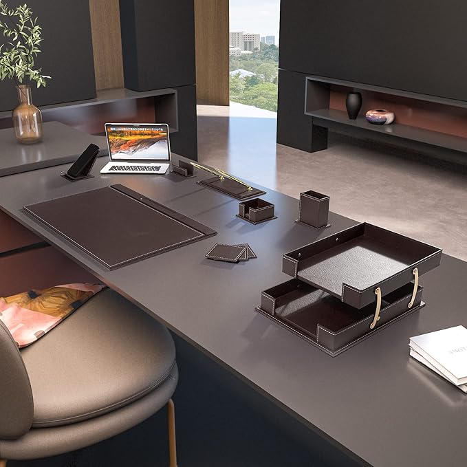 MOOGCO Desk Organizers - Desk Accessories - Leather Desk Organizer - Bonded Leather Set - Office Desk Accessories - Home Office Accessories - Desk Supplies - Leather Desk Set - Office Accessories