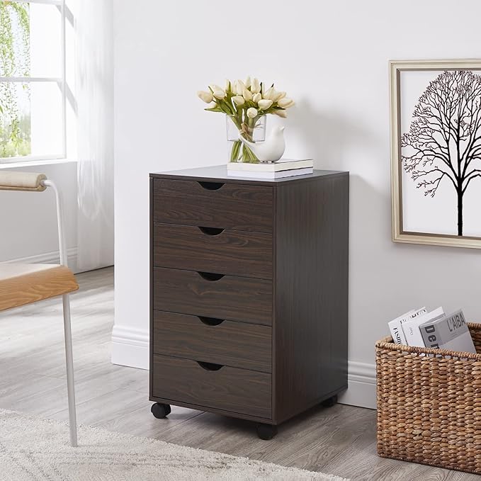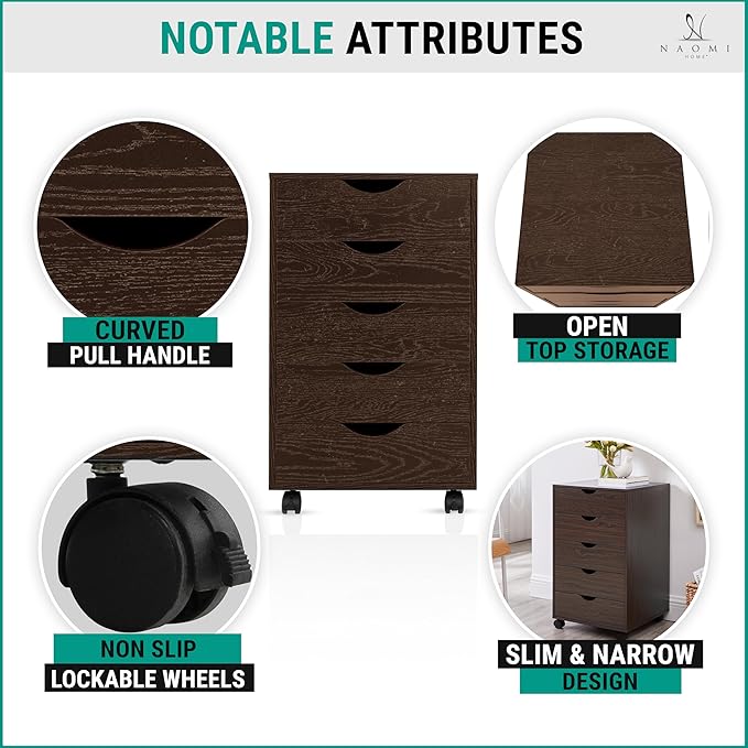 Naomi Home Wooden Office File Cabinets for Home Office, Lateral File Cabinet, Mobile Storage Cabinet Filing Storage Drawer Espresso/5 Drawer