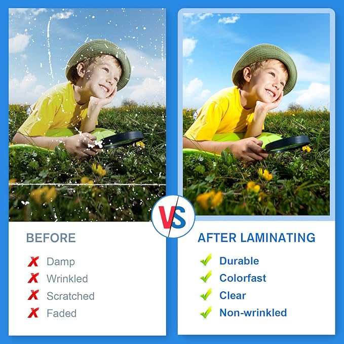 - Wide Application: Perfect for protecting photos, certificates, card, signs, calendars, kids artworks. It is compatible with most laminator brands.