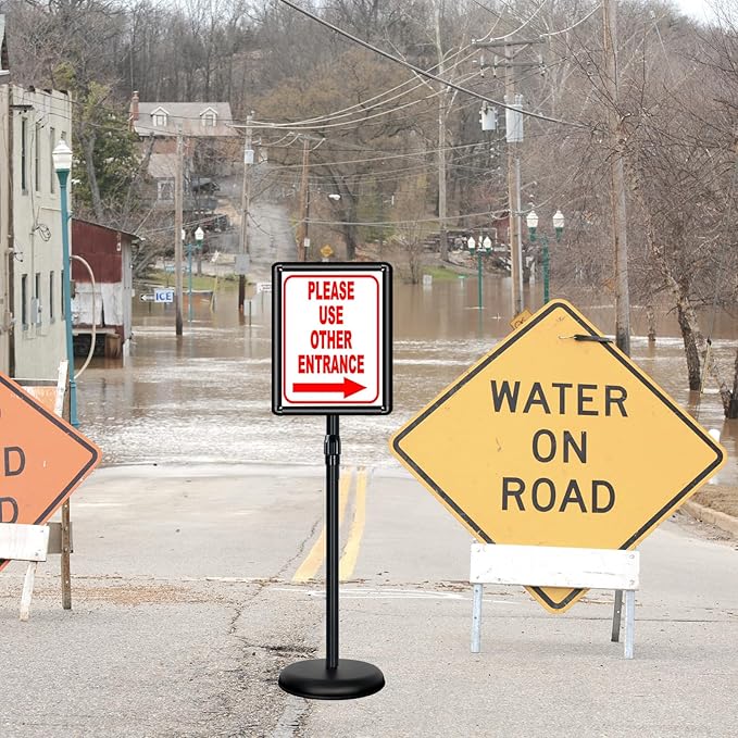 - ➽Sturdy & Stable: The material of the poster frame is aluminum and the material of the stand pole is stainless steel. Besides, you can add water and sand into the rubber base to increase stability.