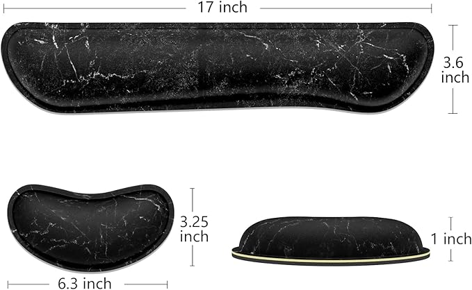 - Enlarge Thicken Size: 2-in-1 wrist rest set to provide double delighted experiences and save your time in purchase them separately. 17*3.6*1 inch keyboard wrist rest pad and 6.3*3.25*1 inch mouse wrist pad offers more support to your wrist