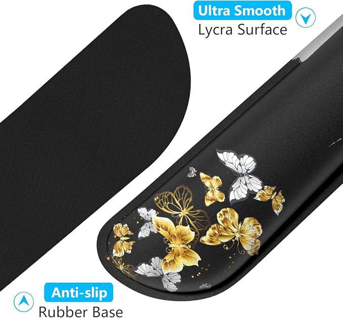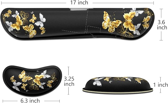 Dapesuom Enlarge Keyboard Wrist Rest, Memory Foam Wrist Cushion for Desk Mats Support, Typing Pain Relief Keyboard Mouse Pad Rests Set with Non-Slip Base for Gaming Laptop Office Computer, Butterfly