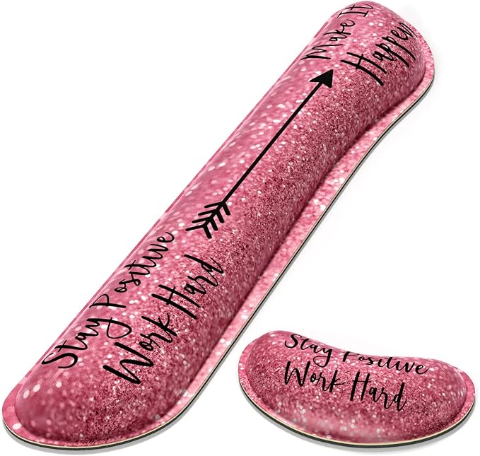 Dapesuom Enlarge Keyboard Wrist Rest, Memory Foam Wrist Cushion for Desk Mats Support, Typing Pain Relief Keyboard Mouse Pad Rests Set with Non-Slip Base for Gaming Laptop Office Computer, Quotes