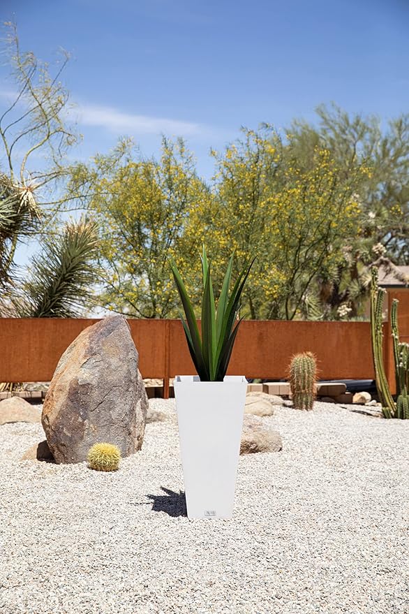 - GARDEN DECOR: Decorate your space with the Veradek Taper planter; Whether you use it as a patio, entrance or railing accent, this strong and sturdy yet lightweight contemporary garden container is the perfect fit with its sharp and modern appeal