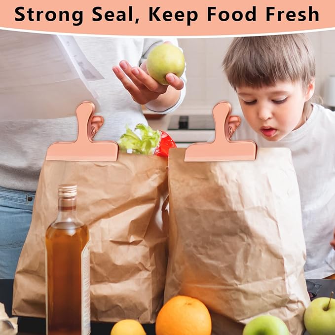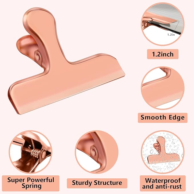 - 【EXCELLENT MANUFACTURING TECHNIQUES】Our stainless steel chip bag clips are coated with rose gold enamel paint, ensuring durability for years to come. Unlike plastic clips, these sturdy and durable clips have rounded corners, eliminating any risk of injury or cuts. You can trust that these clips will last a lifetime.