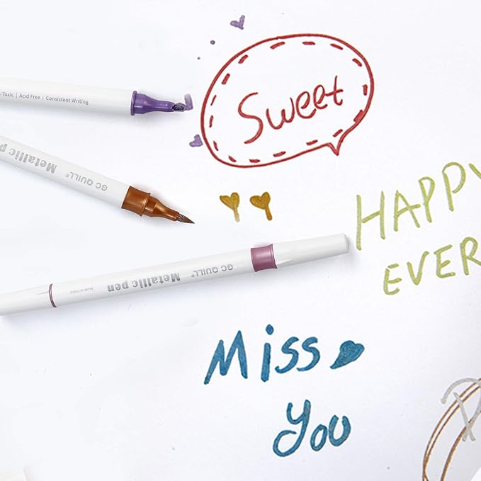 GC QUILL 12 Colors Metallic Marker Pens - Dual Tip Brush and Fine Point Pens for DIY Album, Black Cards, Scrapbooking, Craft Supplies, on Ceramic, Stone, Glass, Fabric GC-MP12