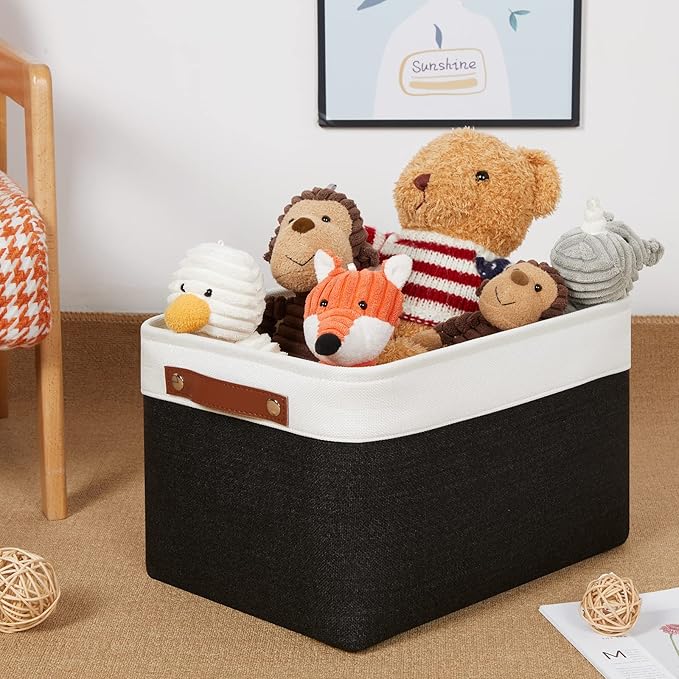 DULLEMELO Canvas Storage Bin with Handles, Fabric Bins for Shelves, Bedroom, Office,Nursery,Fabric Storage Baskets for Toys, Clothes,Gift(3-Pack Medium-15 inch X 11 inch X 9.5 inch , White&Black)