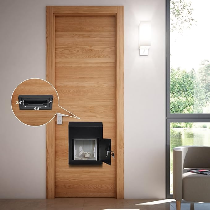- 【PLENTY OF STORAGE SPACE】 - The door drop box measures 15(H)*12(L)*6(W) inches, offering plenty of storage space for your mails, documents, checks and envelopes and small-sized items, such as keys, cash. It can meet your daily needs.
