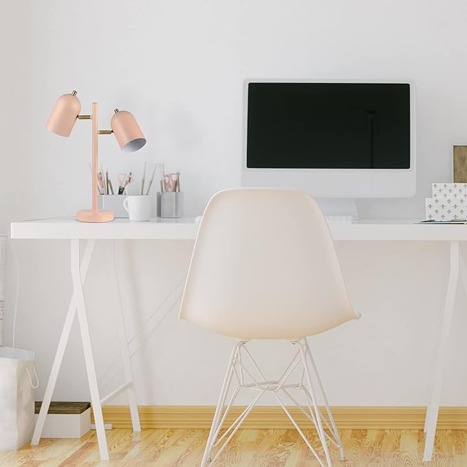 GLOBE Electric 30290 19" 2-Light Desk Lamp, Matte Pink, Brass Accents, 2.1A USB Port, On/Off Rotary Switch on Each Shade, Reading Light, Dorm Room Essentials, Lamps for Living-Room, Office Décor