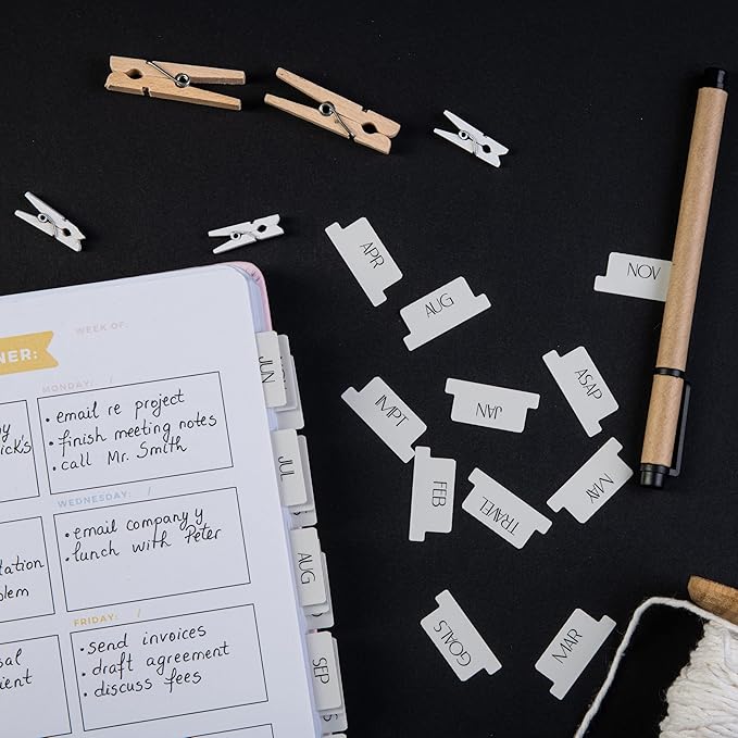 - 24 Tab Stickers: Great value set of tab stickers that includes 12 month tabs and 4 blank tabs so you can reference your own notes and organize your planner better.