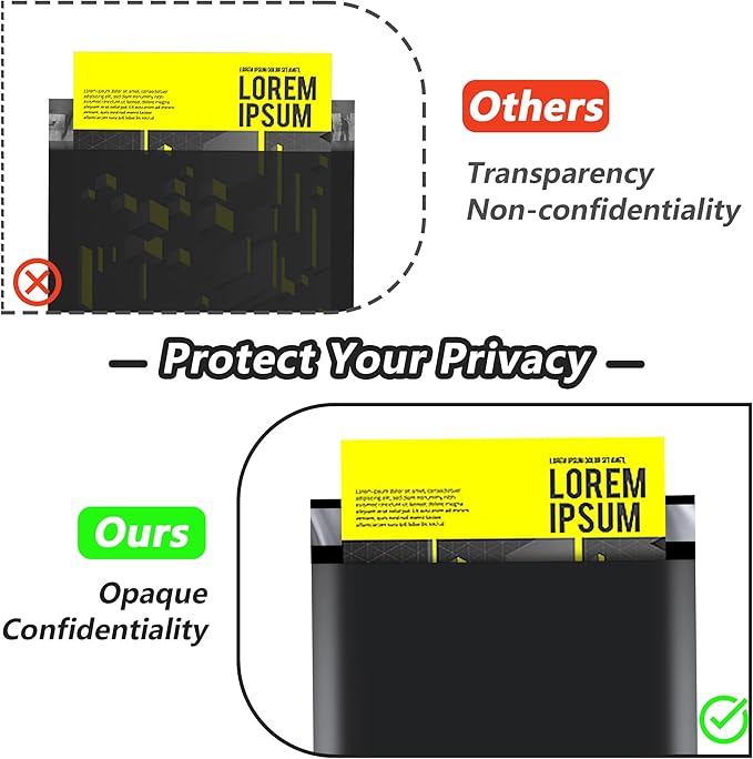 - 【Durable Protection & Privacy-Protection】Our black mailing envelopes are designed with high strength and are Tear, stretch and puncture resistance to keep the contents safe from moisture, chemicals, tampering, piercing and tearing crack. In addition, the inner lining of the shipping envelopes are made of dark material to protect the confidentiality of your goods.