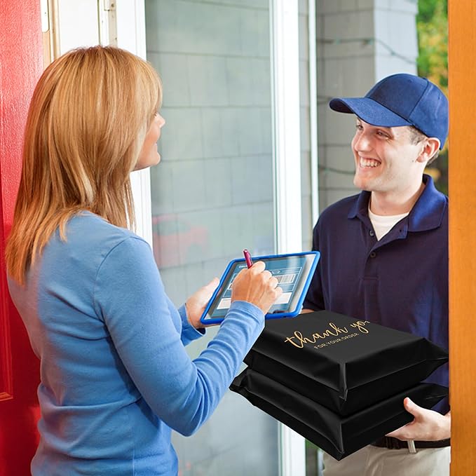JinRuiKJ Thank You Poly Mailer 10x13 Inch 25 PCS, Shipping Bags for Clothing, Packaging Bags for Small Business, Strong Adhensive, Waterproof and Tear-Resistant Mailing Envelopes, Black