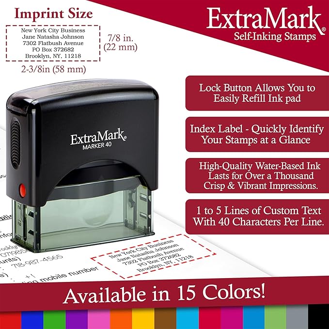 - Personalized Ink Stamper: ExtraMark personalized stamps with name which provides thousands of smooth impressions before needing to be re-inked.