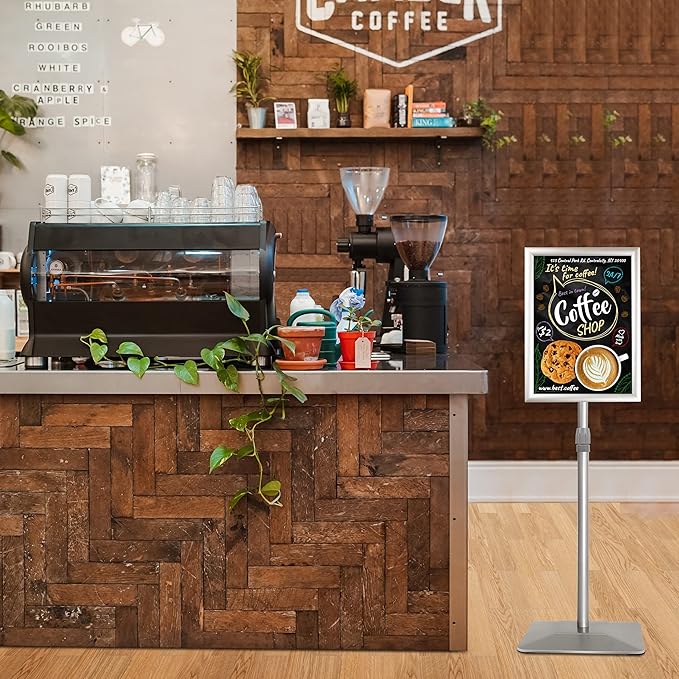 - ✔【MULTI-SCENE DISPLAY】Heavy Duty Sign Stand has high stability and can adapt to different places and signs. Such as shops, offices, restaurants, cafes, hotels, banks, hospitals, schools, exhibitions, churches, concerts, film shows, car shows, reception areas, weddings, services The center displays paper ads, menus, posters, photos, signs, notices, brochures, and more.