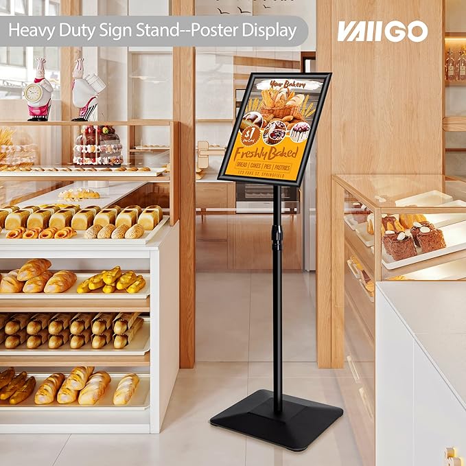- ✔【BUY WITH CONFIDENCE】VAIIGO Heavy Duty Sign Stand is easy to operate, and you can enjoy a 12-month warranty and a 30-day free exchange and refund service from the moment of purchase. If you encounter any problems, please contact us first. We will be happy to communicate with you to resolve issues. Happy shopping!