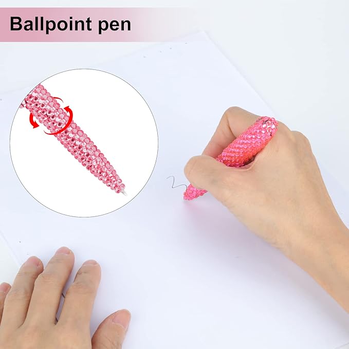 - 3.【Ballpoint Pens】 Bright pasted rhinestones decorated for all sides,make your ballpoint pen special and different from others.Rotate the top of the pen to reveal the tip,give you smooth writing experience.