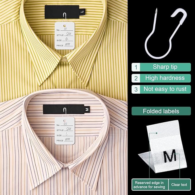 - Multiple Size Choices: the standard barbs fasteners are available in 3 sizes, namely 1 inch, 2 inches and 3 inches, convenient for you to choose from and different sizes can fit clothing and fabrics of various styles and sizes; And the size labels for clothing from XS to 3XL can bring you lots of conveniences