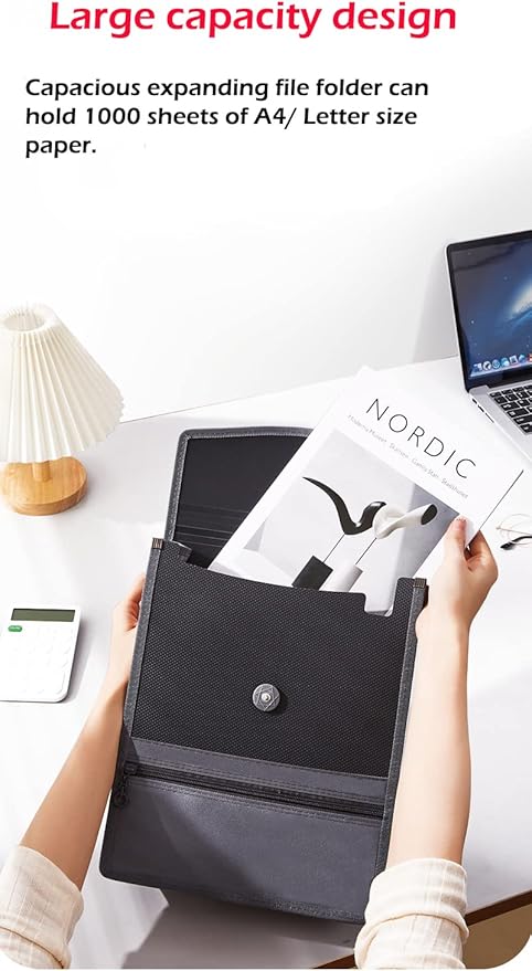 - 【3-1/2" Expansion 】Product size: 12.6”×10.2”×3.1” (L* W* H). Capacious expanding file folder can hold 1000 sheets of A4/ Letter size paper. It is large enough to keep all of your important documents securely without getting all bunched up but also compact enough to carry in a backpack.