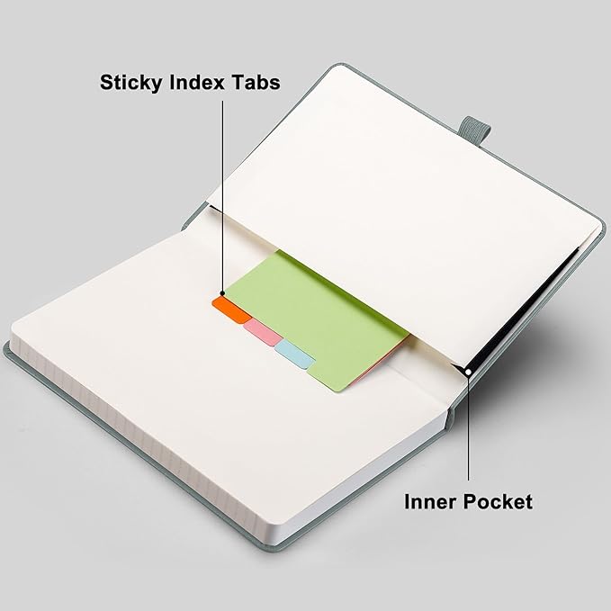 - LINED JOURNAL NOTEBOOK: RETTACY Lined Journal Notebook comes in a A5 size (5.7'' x 8.3''), 192 numbered pages, 7 mm college ruled, durable and smooth leather hardcover, 100 GSM thick acid-free paper, 180° lay-flat, pen holder, elastic closure band, 2 ribbon bookmarks, inner pocket & sticky notes