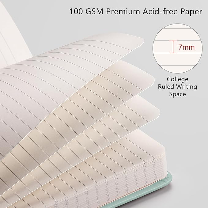 - PREMIUM PAPER: Crafted with time-resistant 100 GSM paper, this journal preserves thoughts flawlessly while resisting ghosting/bleed-through with most pens. Acid-free material ensures long-term preservation, and its smooth surface enhances writing clarity - blending durability and premium performance