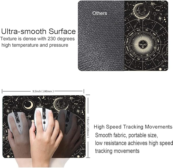 - Mouse Pad Size: 9.5 x 7.9 x 0.12 Inch(240 mm x 200 mm x 3 mm);3 mm thickened design to adapt to all surfaces