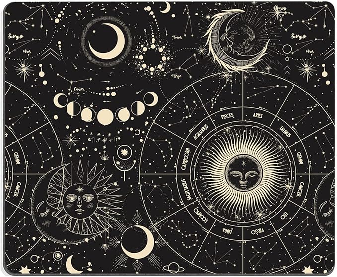 Hokafenle Mouse Pad, Square Personalized Computer Mouse Pads with Planet Design, Washable Mouse Mat, Gaming Office Home Non-Slip Rubber Base Mousepad, Moon and Sun