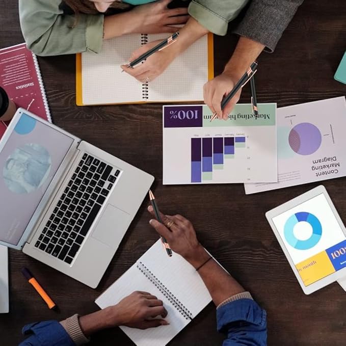 12 PCS 2 in 1 Stylus Ballpoint Pen with Stylus Tip, 1.0 mm Black Ink Metal Pen Stylus Pen for Touch Screens (Rose Gold & Black)