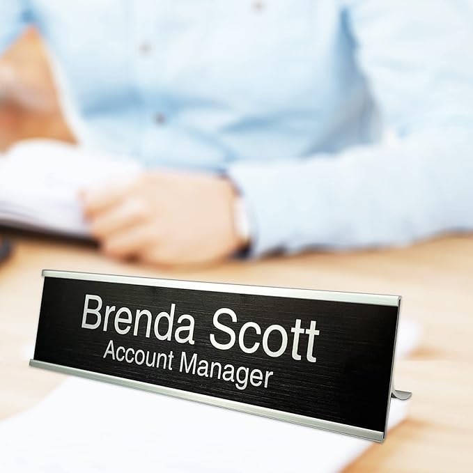 - Personalized Design:These name plates for desk, wall or door. Each name plate up to 2 lines, and up to 35 characters per line. The customized texts are clear, never fade. The name plate can be wall-mounted or sit on a desk, making your office look more professional.