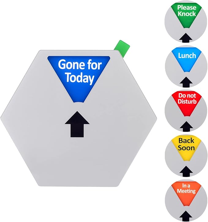 - Easy to switch between Do Not Disturb, Please Knock, In a Meeting , Back Soon, Lunch and Gone for Today, but the status will remain unchanged unless you change it manually because inside the sign there are small magnets that will keep the status stay in place