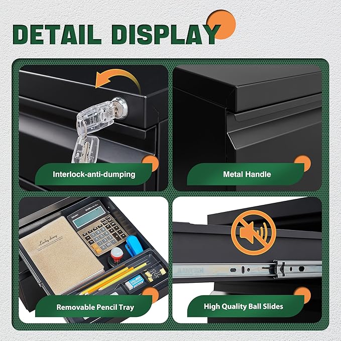 - Privacy Security:1 lock secures all three drawers, comes with 2 keys for your locking ,Anti-tilt mechanism allows only one drawer to open at the same time to prevent the cabinet from tipping forward