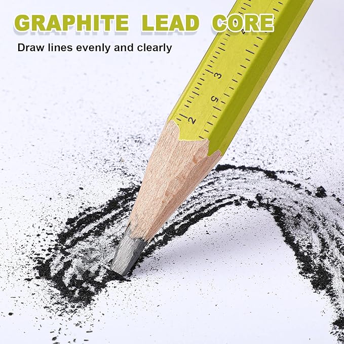 - Flat Design and Ruler Printed: construction pencils feature a flat design that will not roll when you work and help you easily grasp even with work gloves; In addition, one side of the pencil is printed with metric and standard marks, facilitating woodwork marking work