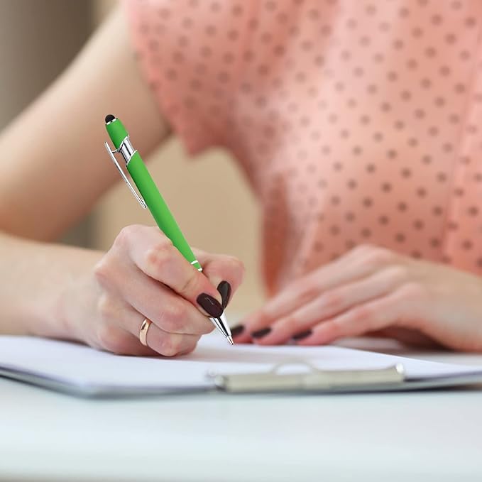 - ❤【Enough Quantity】You will receive enough green ballpoint pens with stylus tips, enough for your daily needs and replacements; The size of a single green stylus pen with stylus tip is 5.5 x 0.4 inch/ 14 x 1 cm, which is the proper size for a pen; Note: The ink on the refill is black