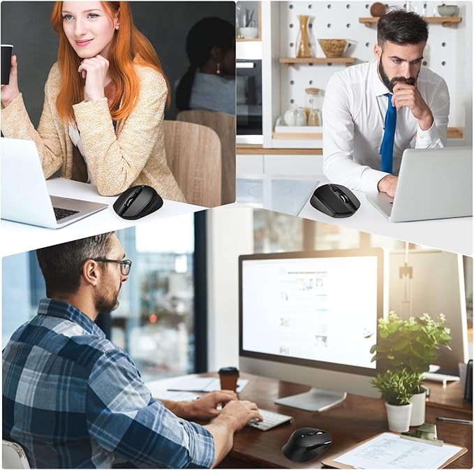 - 【Plug & Play design bring convenience to you】After pluging the type-c receiver(stored in the battery slot) into the computer, you can start using it,no drivers need to be installed. The 2.4 GHz wireless mouse provides a fast ,powerful, reliable connection, effective up to 15 meters of range, effectively eliminates delays, dropouts, and interference.